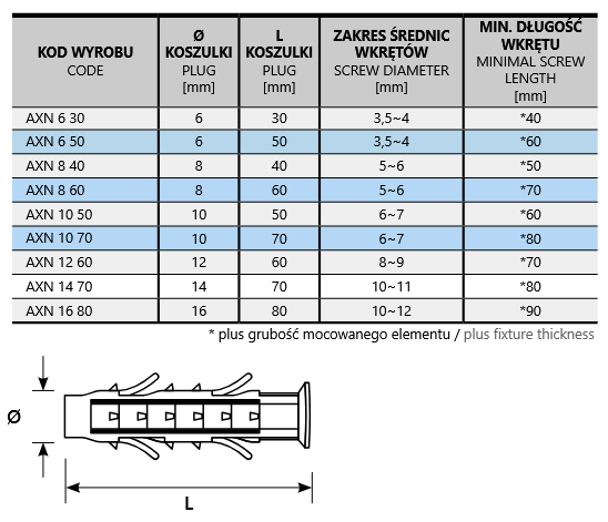 | Minimalna długość wkrętu | 80 mm + grubość mocowanego elementu |
